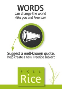 Now you can ask the questions. Help us create a new “Famous Quotes” subject on Freerice.com that will include the words of well-known world leaders that have changed life and the course of history. (photo courtesy of FreeRice)