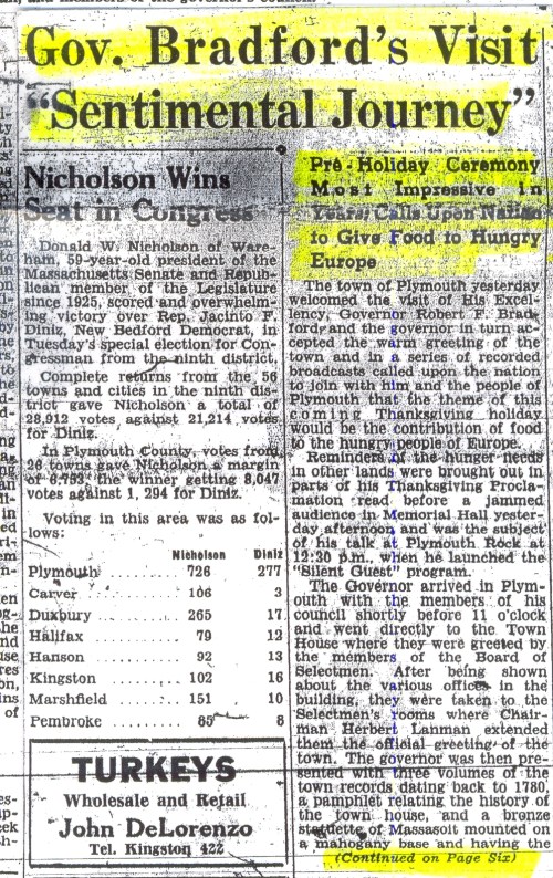 On Thanksgiving Day Americans would figure what it would cost to feed a “silent guest” at their meal and then mail the donation to a committee in Plymouth, MA – the home of Thanksgiving. Donations poured in and led to the purchase of many thousands of CARE packages of food going to the hungry in Europe.