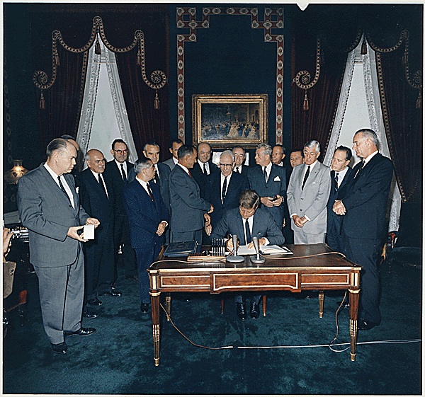 President Kennedy Signs the Limited Nuclear Test Ban Treaty in October, 1963 (National Archives)