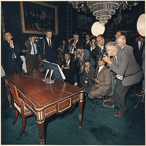 Reporters Gather Around the Limited Test Ban Treaty (National Archives)