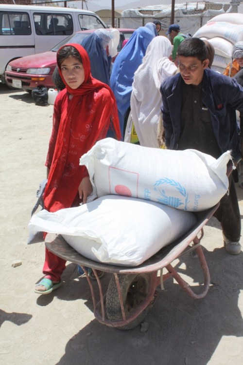 Since last year I have been writing about a promising take-home ration program for street children in Afghanistan. The UN World Food Programme (WFP) and the Aschiana Foundation are teaming up on this initiative which helps Afghan children caught in a severe poverty trap. Below are some photographs of the food distributions courtesy of WFP.