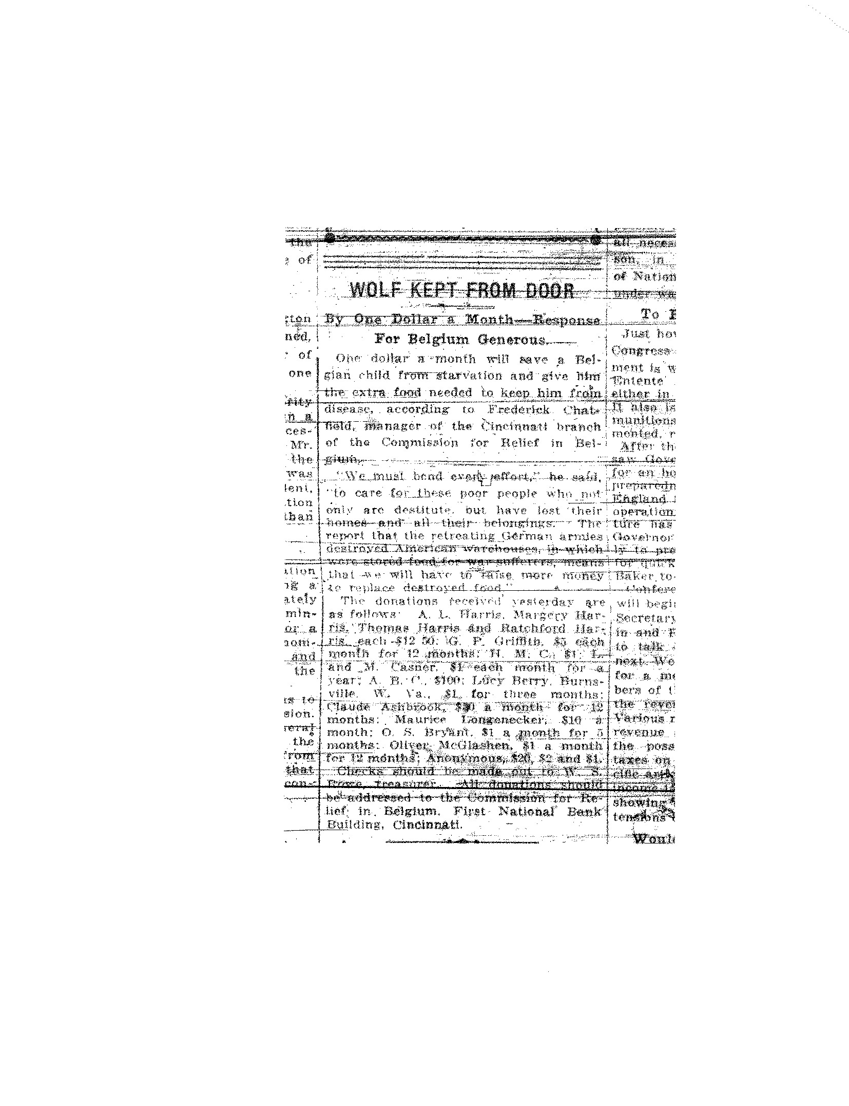 Americans donated to help feed France and other nations in distress. The Congress also passed appropriations supporting food aid for the war victims.